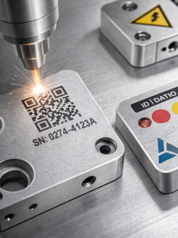Ce procédé offre une gravure fine et détaillée, une excellente résistance aux contraintes mécaniques et chimiques, une traçabilité durable (numéros de série, QR codes, références)