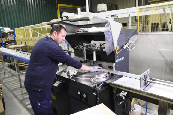 - Mise à longueur avec des tronçonneuses automatiques qui coupent l’aluminium en sections précises, soit avec une seule tête de coupe, soit avec deux têtes pour des coupes plus complexes.